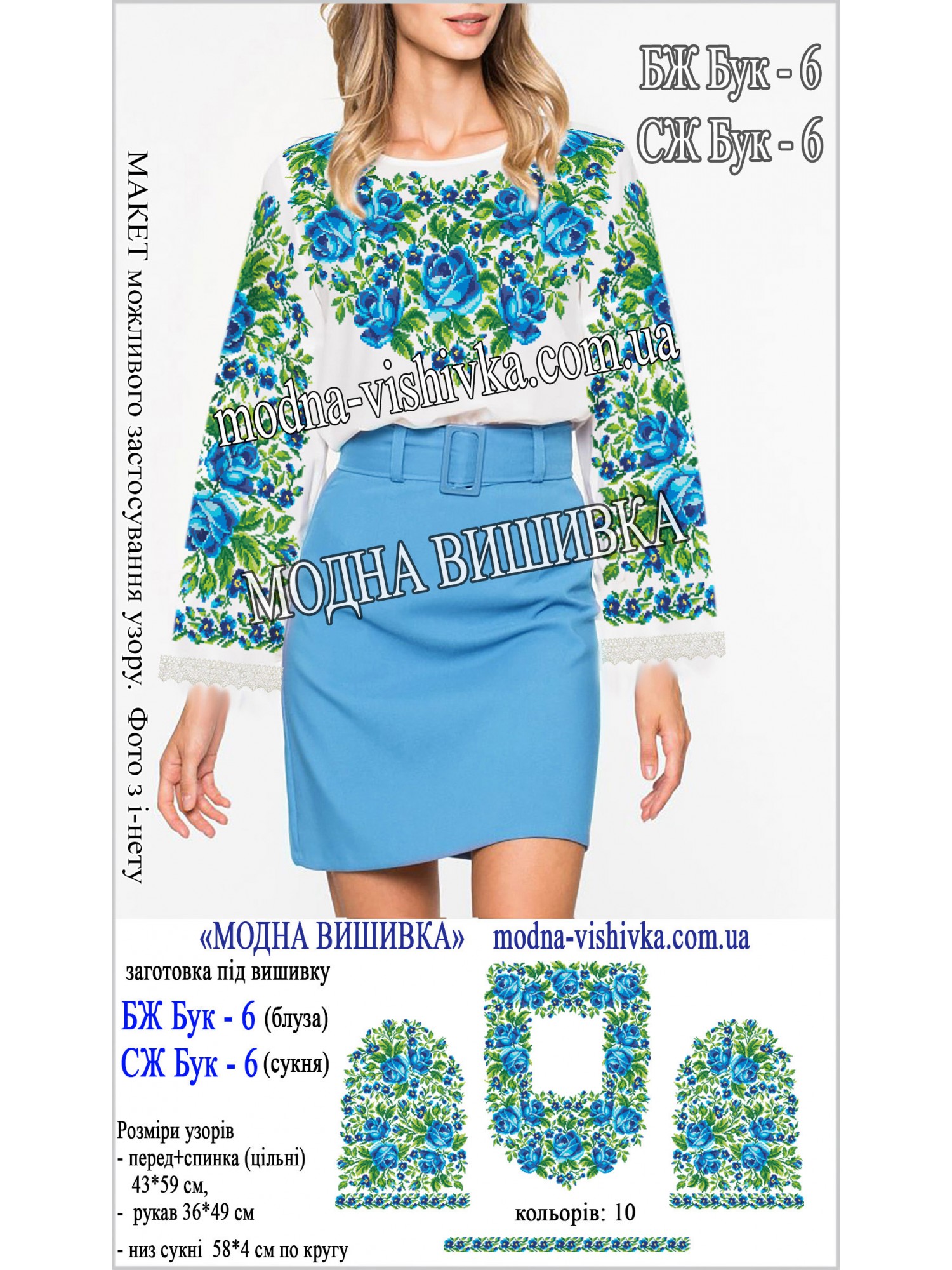 Заготовка на тканині для сорочки жіночої з нанесеною кольоровою схемою, що не змивається і не линяє при пранні.