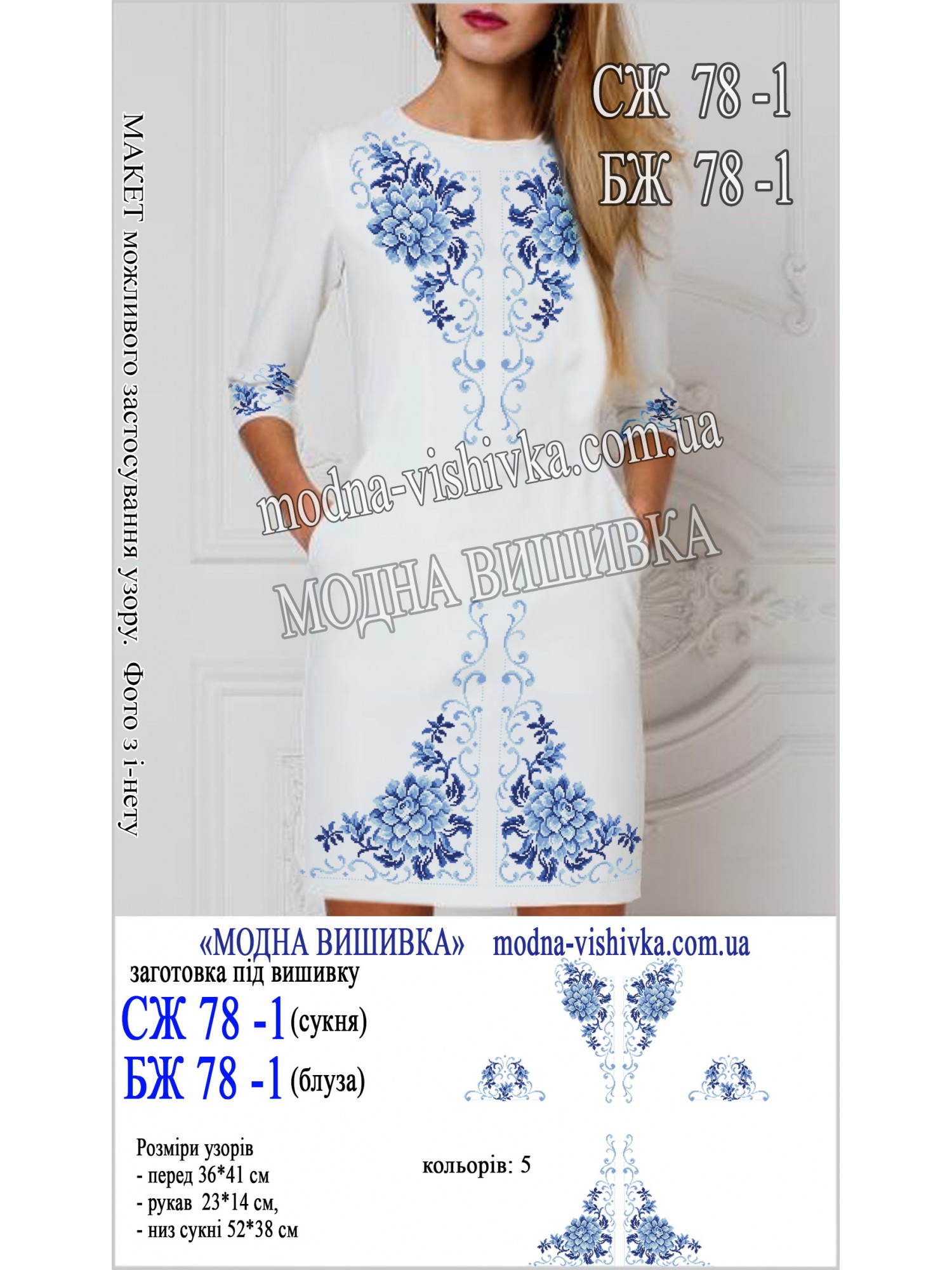Заготовка на тканині для сорочки жіночої з нанесеною кольоровою схемою, що не змивається і не линяє при пранні.