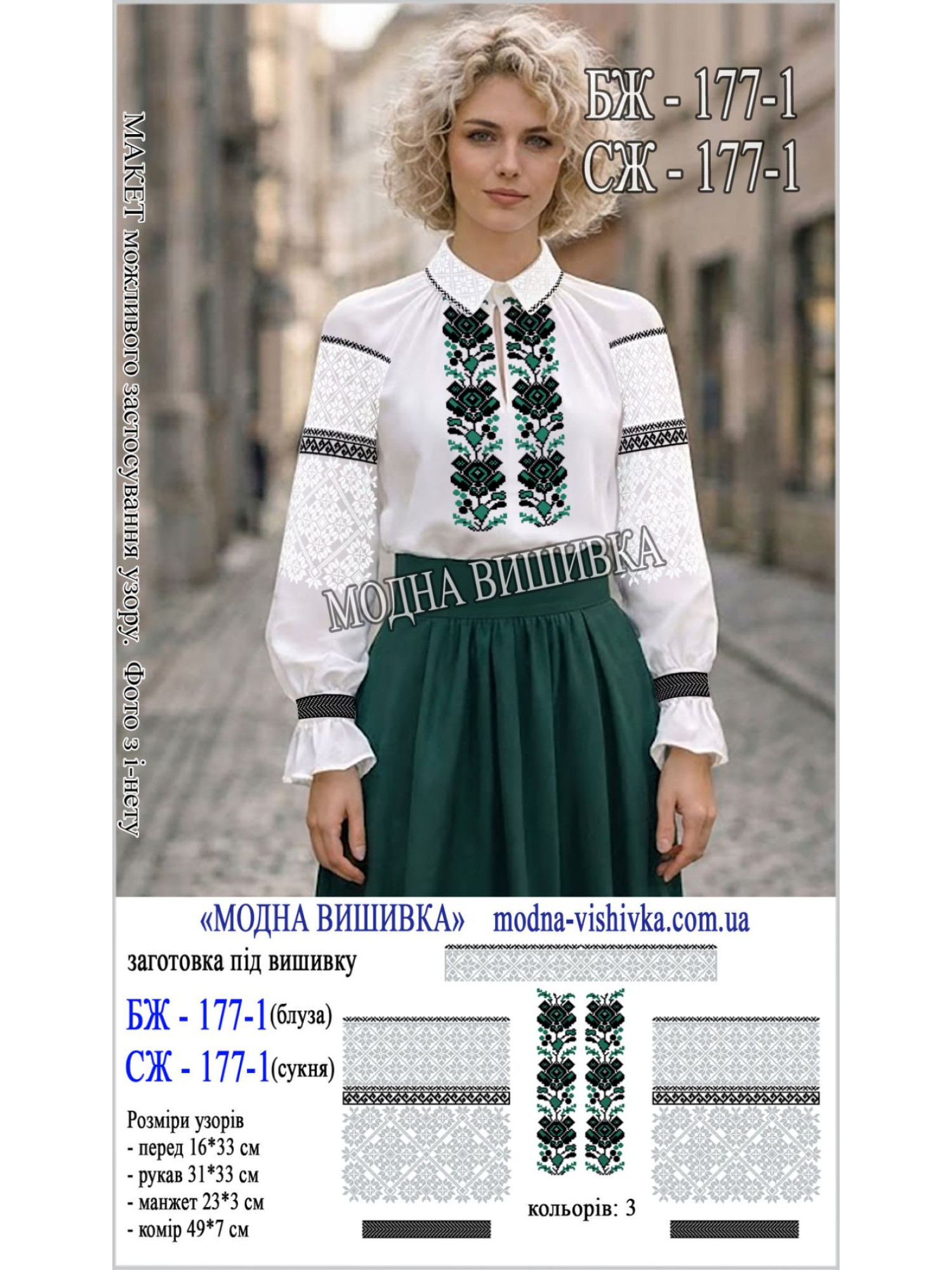 Заготовка на тканині для сорочки жіночої з нанесеною кольоровою схемою, що не змивається і не линяє при пранні.