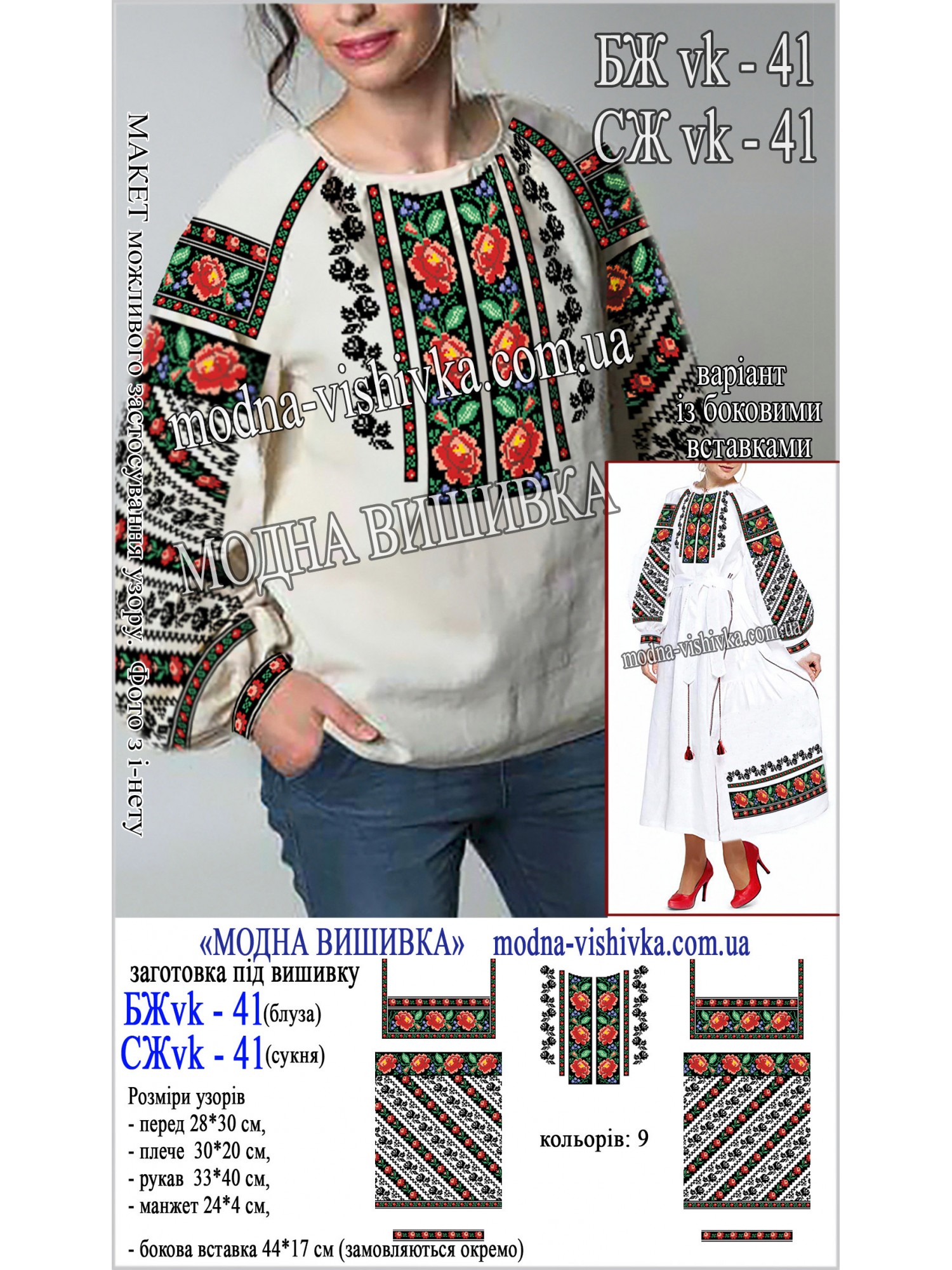 Заготовка на тканині для сорочки жіночої з нанесеною кольоровою схемою, що не змивається і не линяє при пранні.