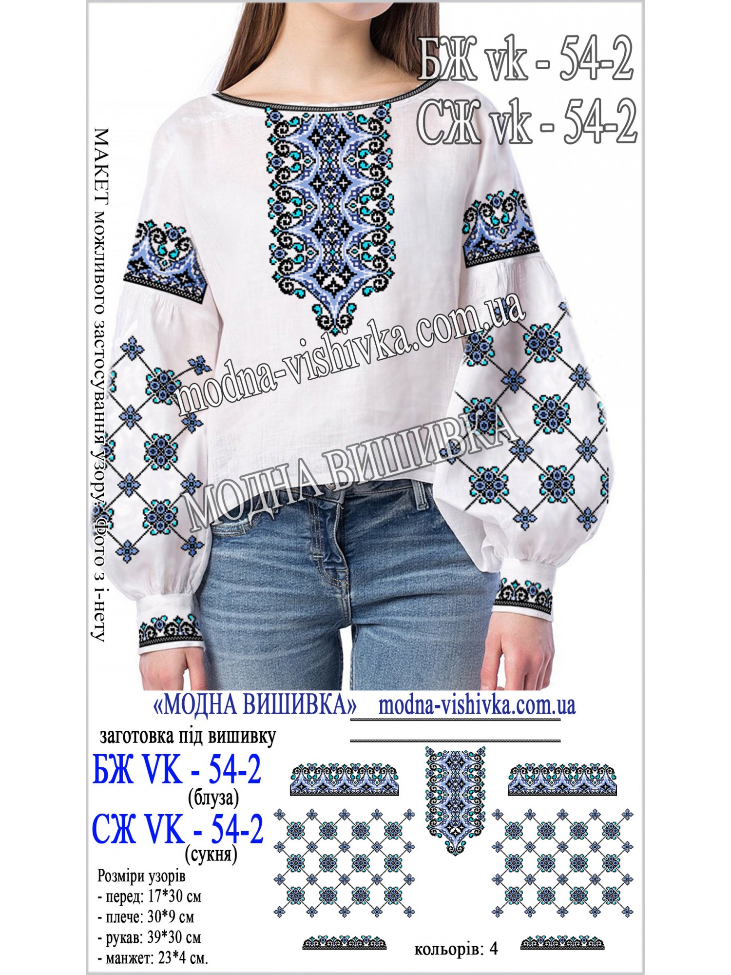 Заготовка на тканині для сорочки жіночої з нанесеною кольоровою схемою, що не змивається і не линяє при пранні.