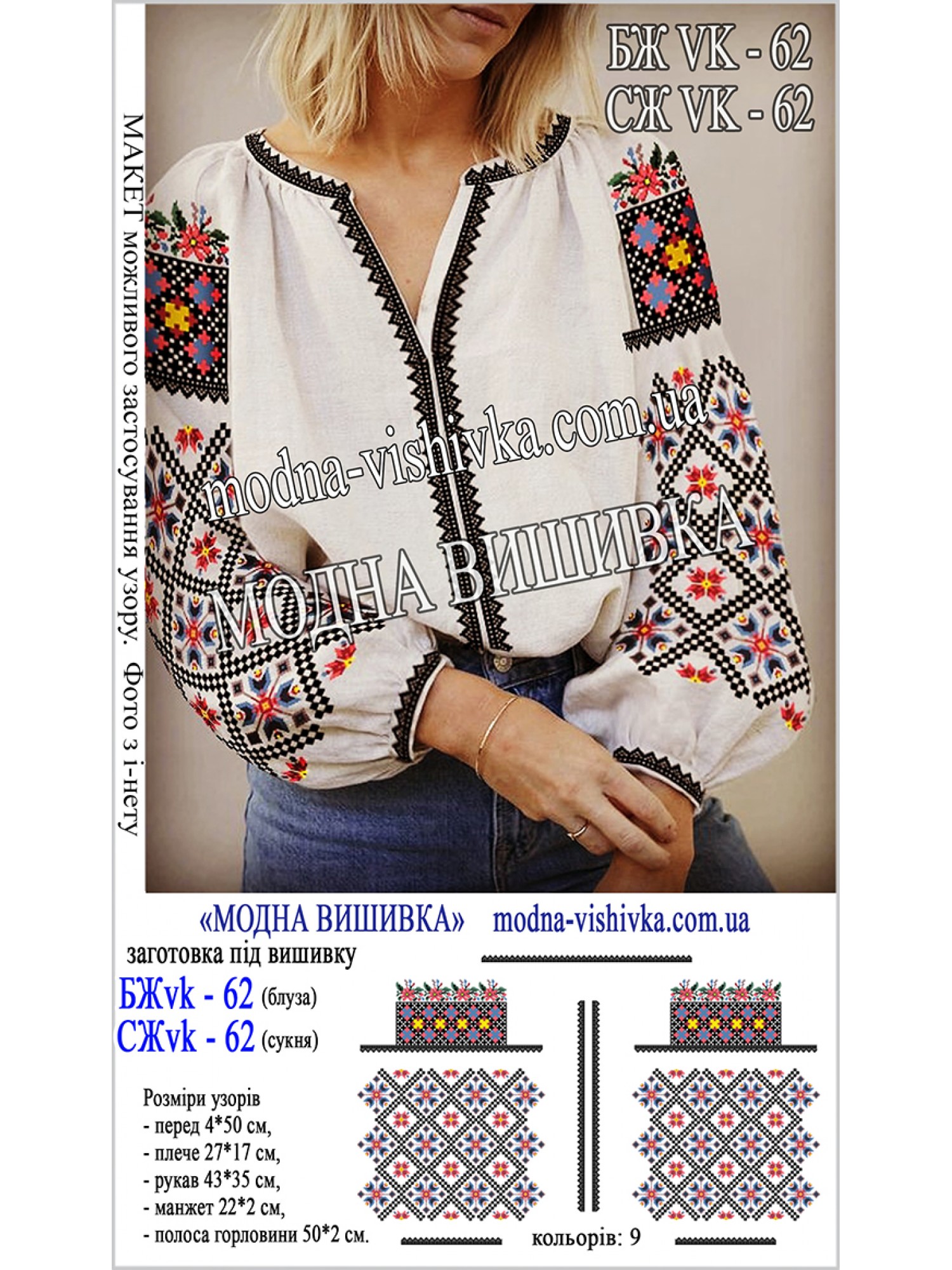 Заготовка на тканині для сорочки жіночої з нанесеною кольоровою схемою, що не змивається і не линяє при пранні.