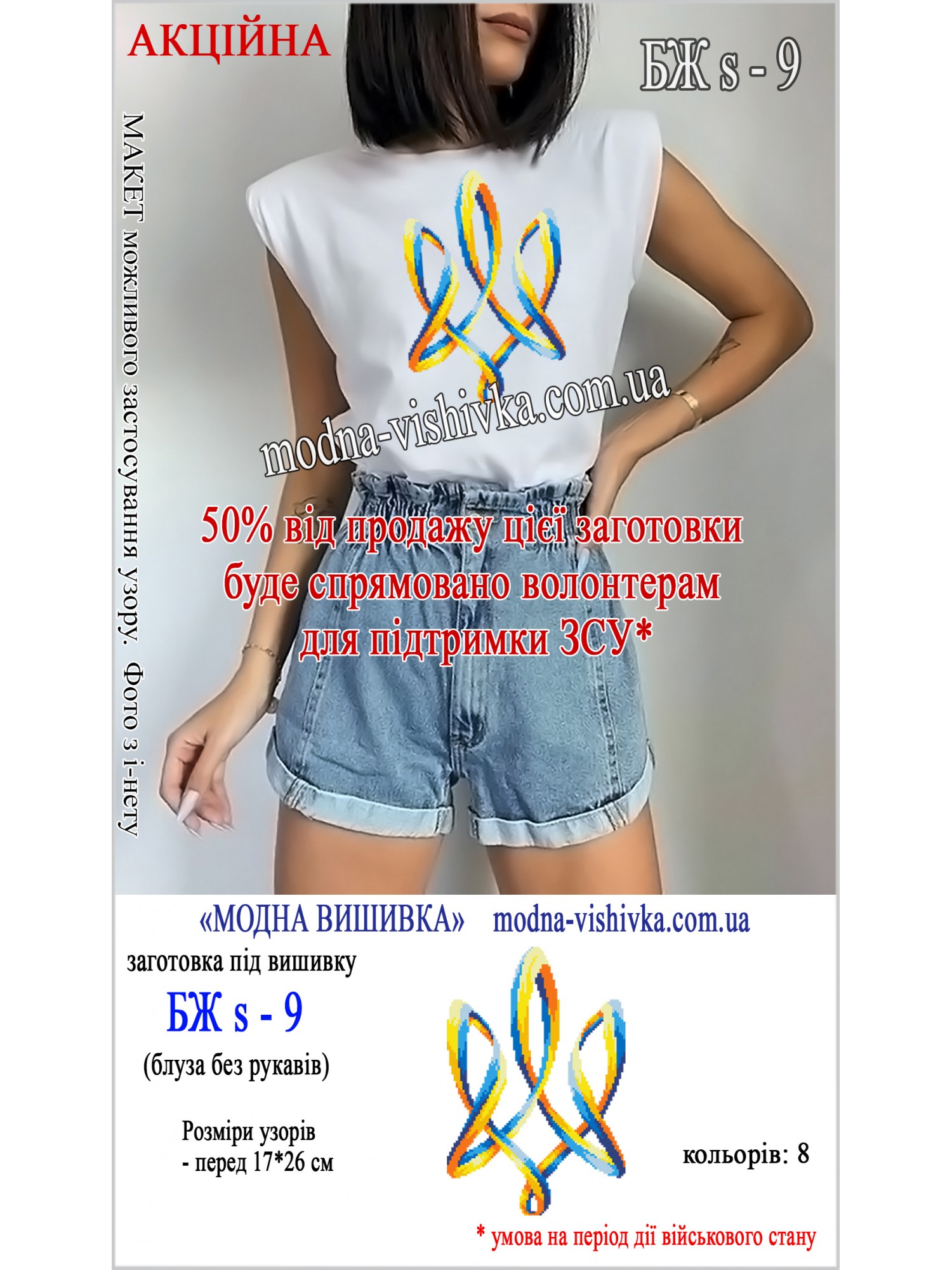 Заготовка під вишивку "Сорочка жіноча літня без рукавів БЖ S-09"