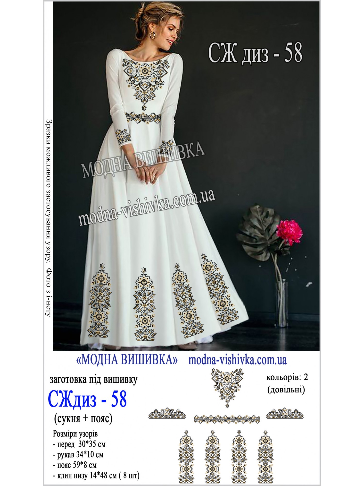 Заготовка під вишивку "Сукня жіноча довга з поясом СЖ диз 058"