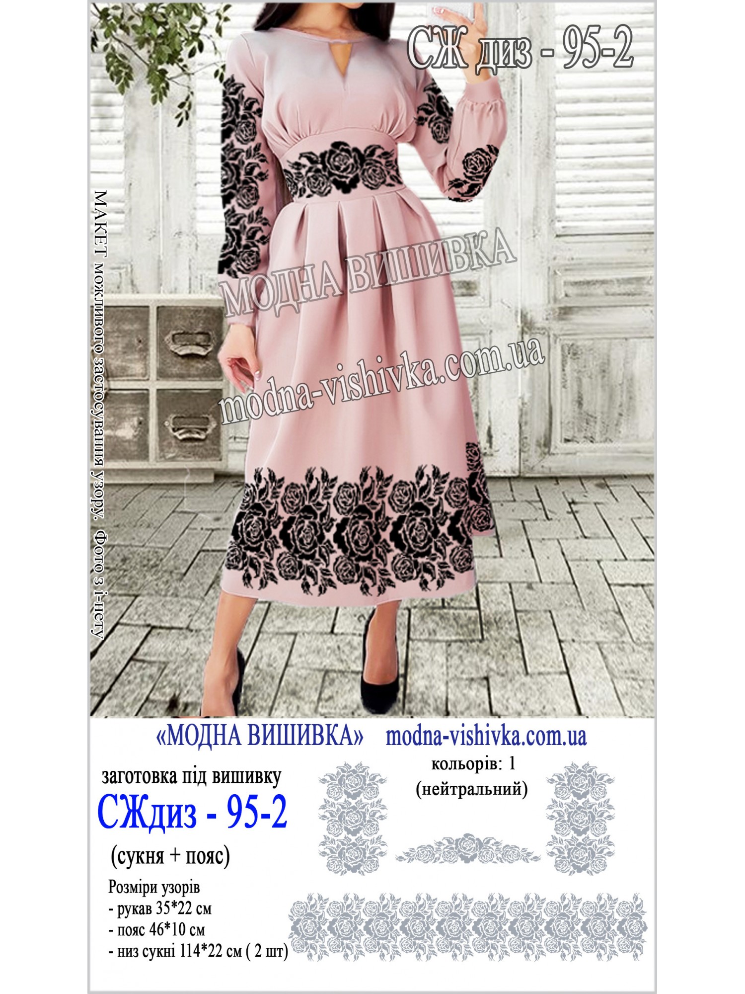 Заготовка під вишивку "Сукня жіноча довга з поясом СЖ диз 095-2"