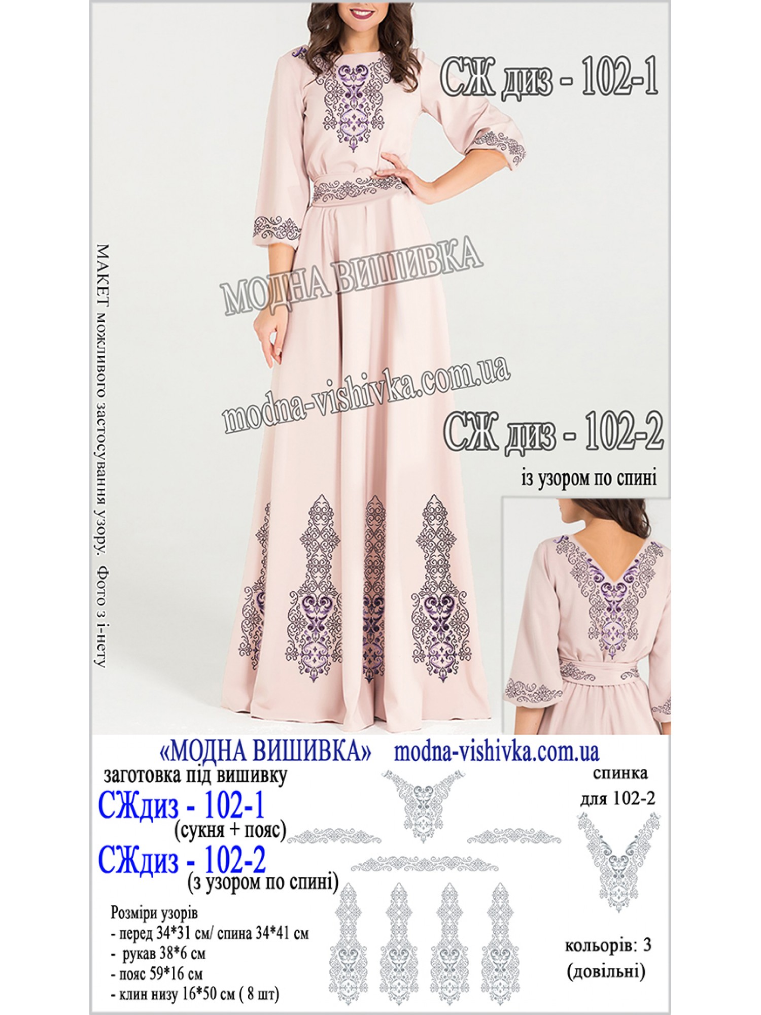 Заготовка під вишивку "Сукня жіноча довга з поясом СЖ диз 102-1"