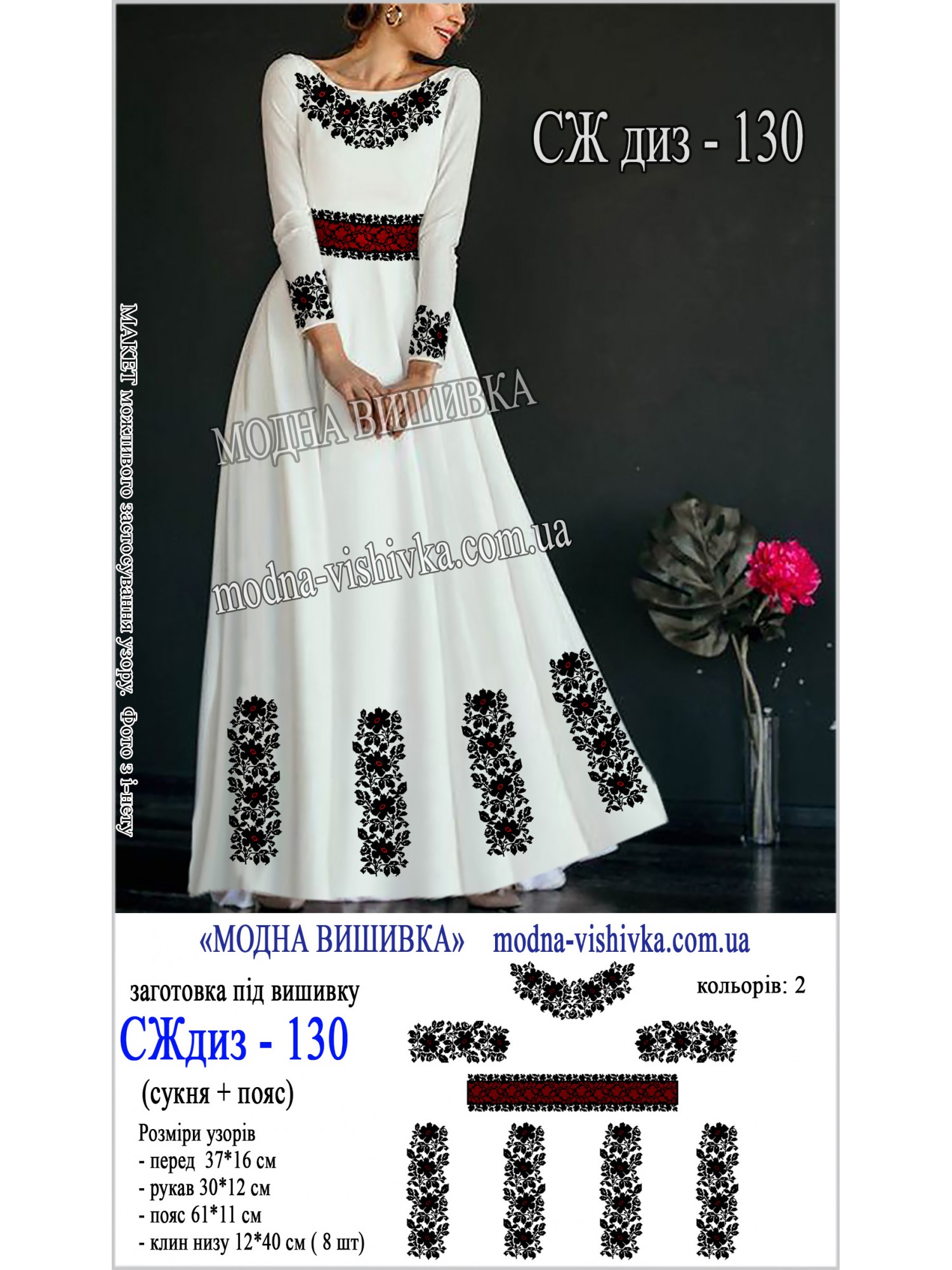 Заготовка під вишивку "Сукня жіноча довга з поясом СЖ диз 130"