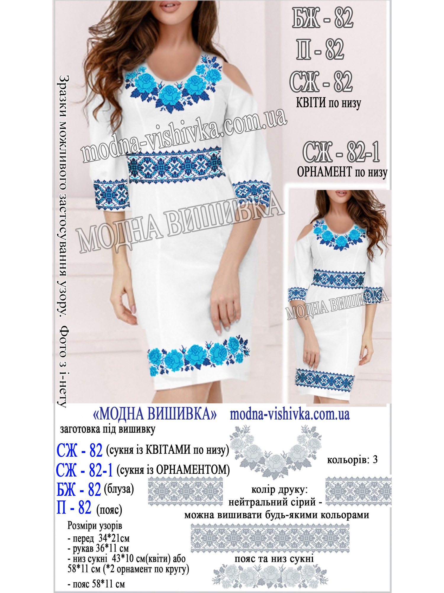 Заготовка на тканині для сукні жіночої з нанесеною кольоровою схемою, що не змивається і не линяє при пранні.