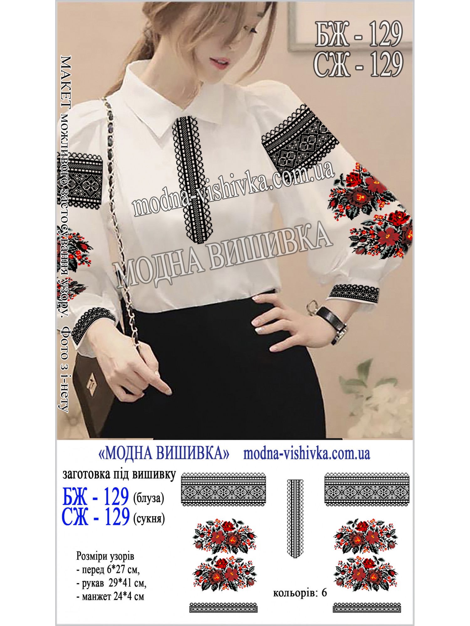 Можливе замовлення збільшеного розміру відрізів тканини: 90*120 (140) см (перед/спинка) та 60*75 см (рукави). Для уточнення ціни заготовки збільшеного розміру звертатися до менеджерів.