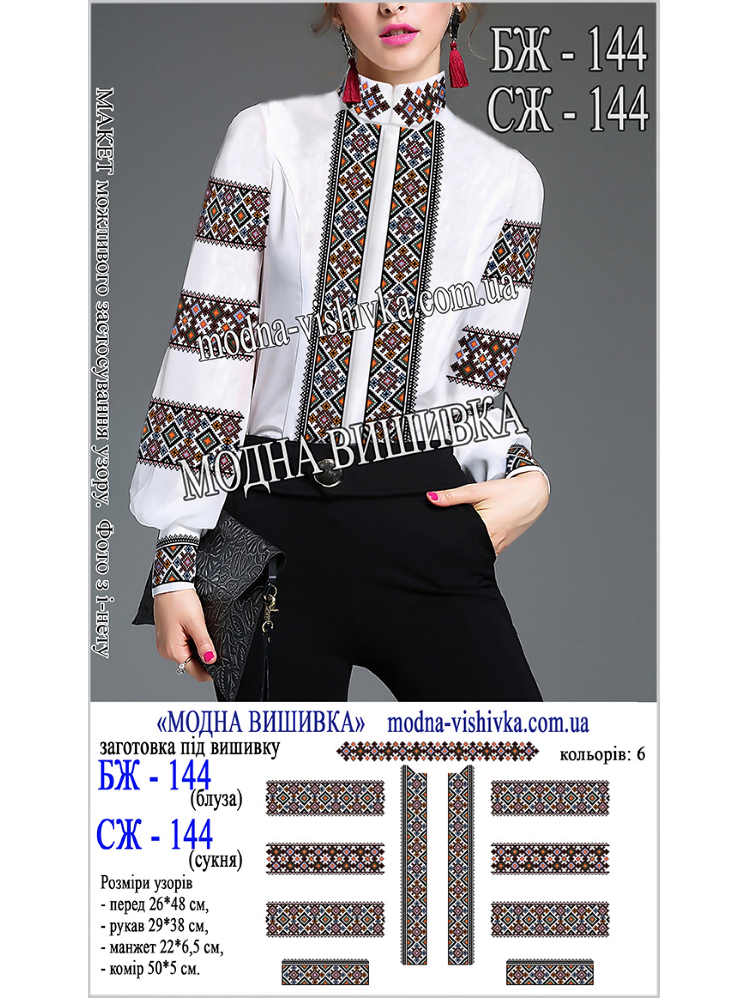 Можливе замовлення збільшеного розміру відрізів тканини: 90*120 (140) см (перед/спинка) та 60*75 см (рукави). Для уточнення ціни заготовки збільшеного розміру звертатися до менеджерів.