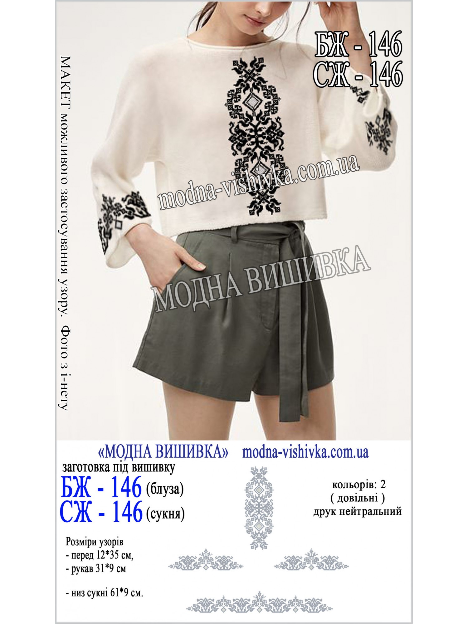 Можливе замовлення збільшеного розміру відрізів тканини: 90*120 (140) см (перед/спинка) та 60*75 см (рукави). Для уточнення ціни заготовки збільшеного розміру звертатися до менеджерів.