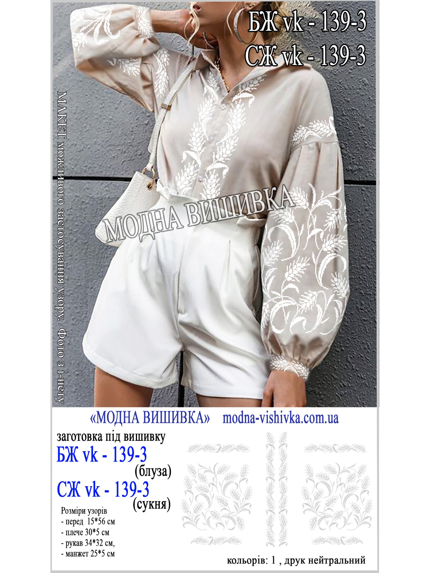 Заготовка під вишивку "Сукня жіноча СЖ VK-139-3"